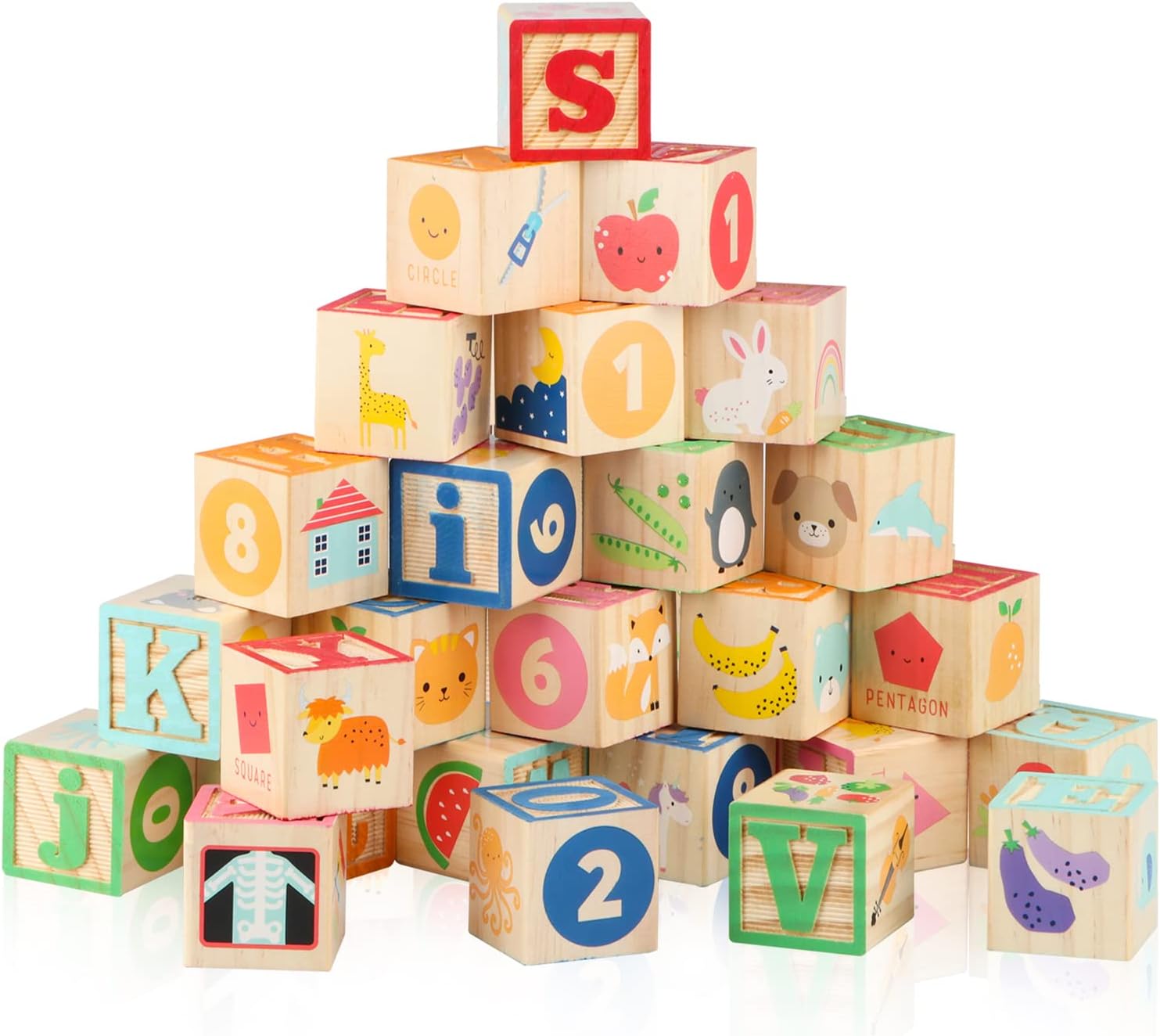Cu litere mici, numere si imagini dragute ale articolelor care incep cu litera fiecarui bloc, aceste blocuri sunt incredibil de versatile. Copiii pot exprima creativitatea in timp ce invata litere, numere, cuvinte noi in limba engleza.