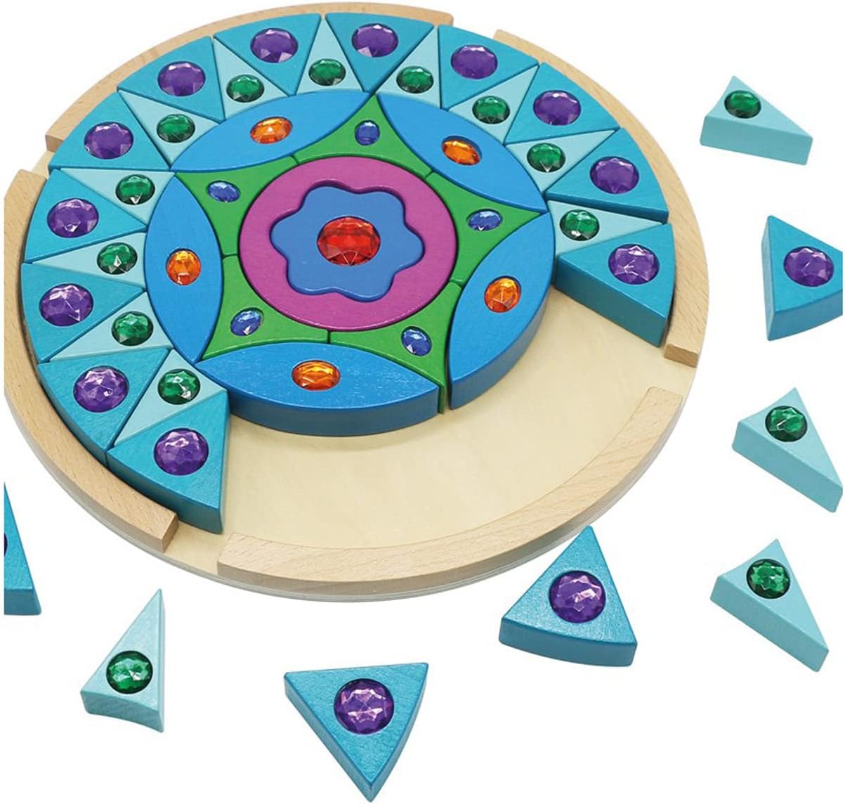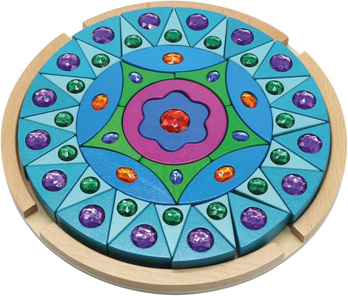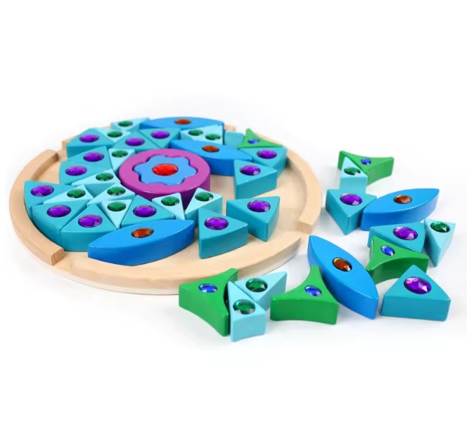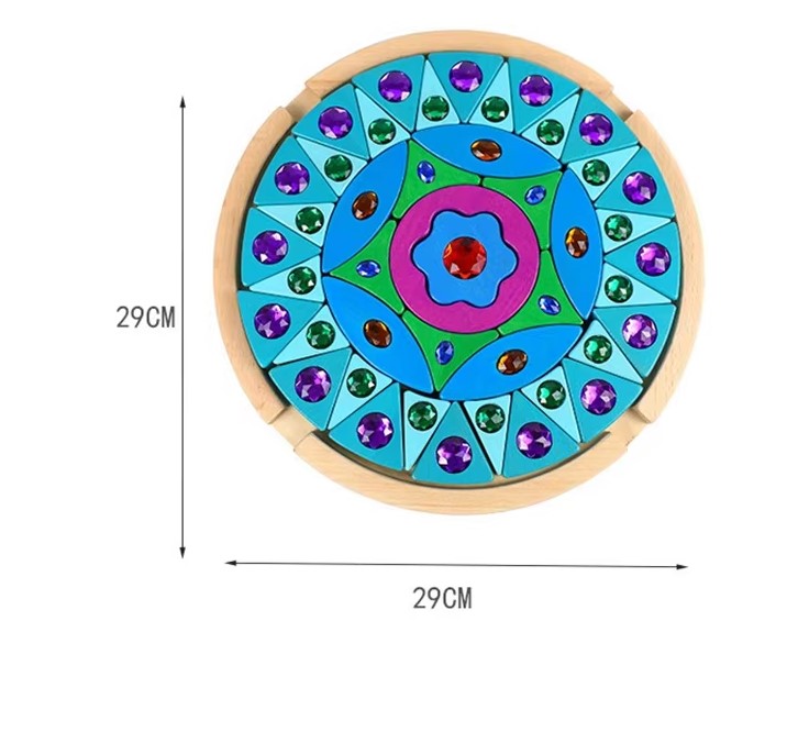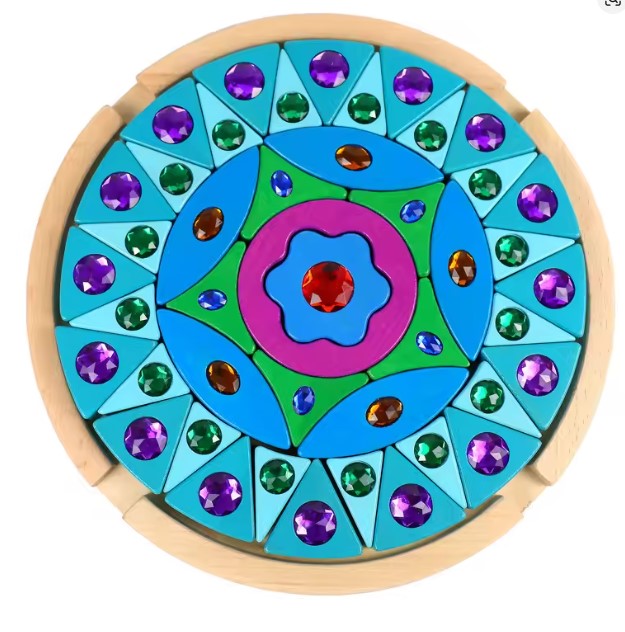 Descoperă un joc fascinant de construcție, artă și stimulare senzorială! Mandala Puzzle este un set de cuburi senzoriale din lemn, decorat cu pietre acrilice colorate, ideal pentru copiii peste 3 ani care iubesc să exploreze forme, simetrii și compoziții vizuale. Fiecare piesă este finisată atent, cu margini netede și vopsele pe bază de apă, fiind sigură și plăcută la atingere.