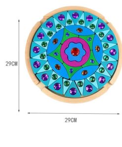 Mandala în ramă – Copilul poate folosi piesele pentru a completa cercul din suportul din lemn, creând modele circulare simetrice. Activitate excelentă pentru răbdare, ordine și simț artistic.