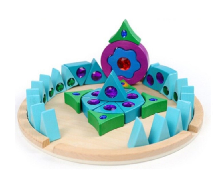 Joc de echilibru – Piesele pot fi așezate vertical sau suprapuse pentru a crea forme tridimensionale, exersând echilibrul și coordonarea.