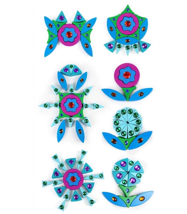 Compoziții libere – Piesele pot fi scoase din cadru și utilizate pe o suprafață plată pentru a crea flori, peisaje, personaje sau structuri 3D (turnuri, coroane, șerpi, etc.).