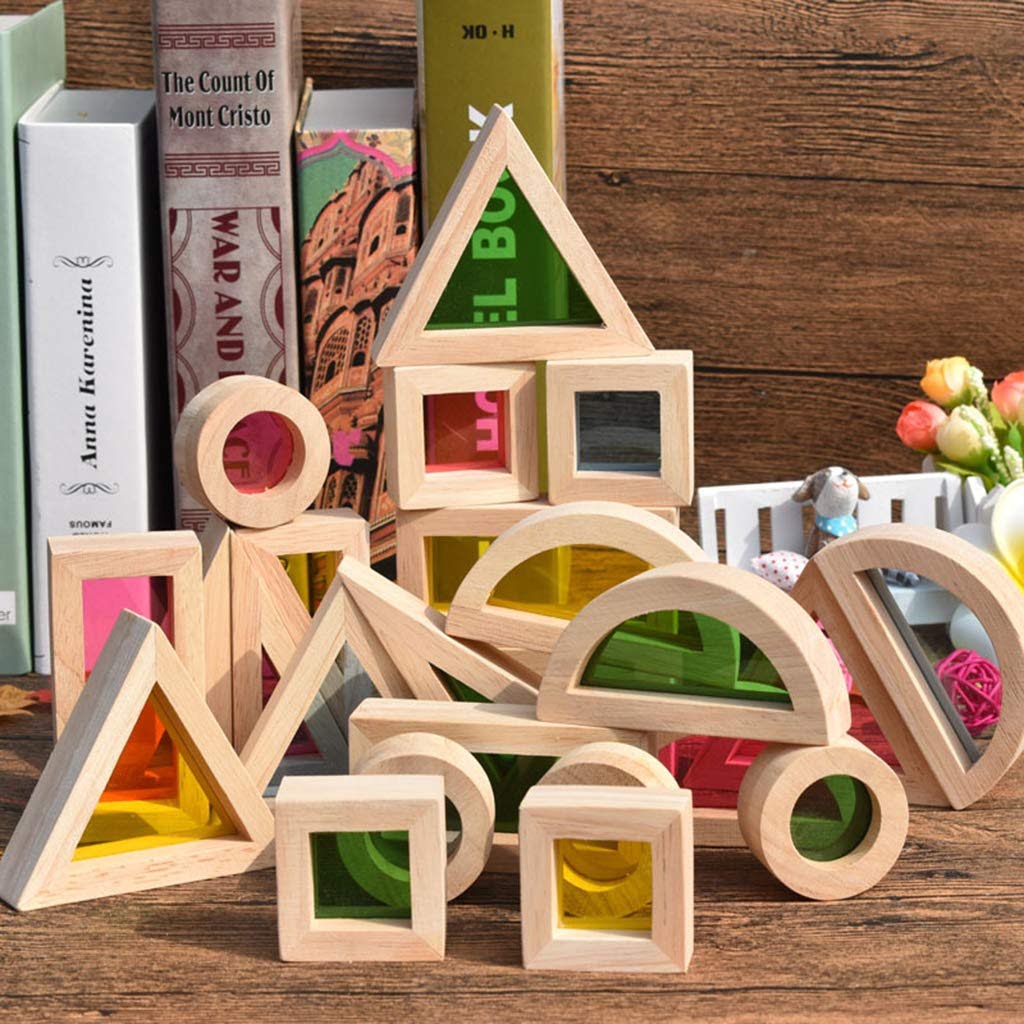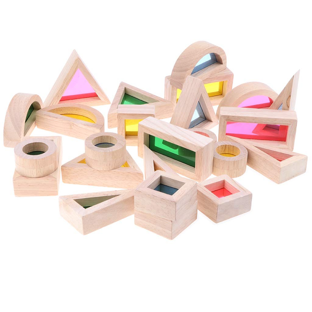 Acest set contine cuburi cu forme netede din lemn de esenta tare, cu ferestre acrilice colorate si transparente. Ele sunt ideale pentru explorarea culorilor si activitatilor de gandire si invatare, a coordonarii mainii-ochi, a perceptiei vizuale.