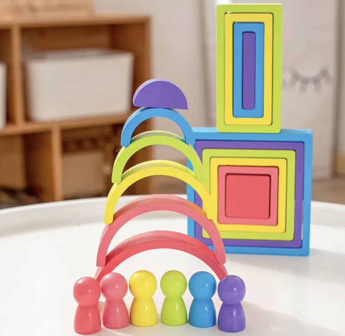 Acest joc educativ din lemn cu 6 semicercuri si culori ii va atrage imediat pe cei mici. Curcubeul este o jucarie versatila, putand fi folosit intr-o multime de moduri. Stimuleaza abilitatile motorii, creativitatea, concentrarea.