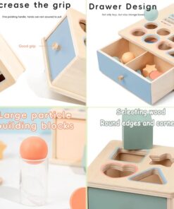 Cutia permanenței Montessori 4 în 1 este un material educativ din lemn natural, proiectat pentru a stimula dezvoltarea cognitivă, senzorială și motrică a copiilor de la vârsta de 18 luni.
