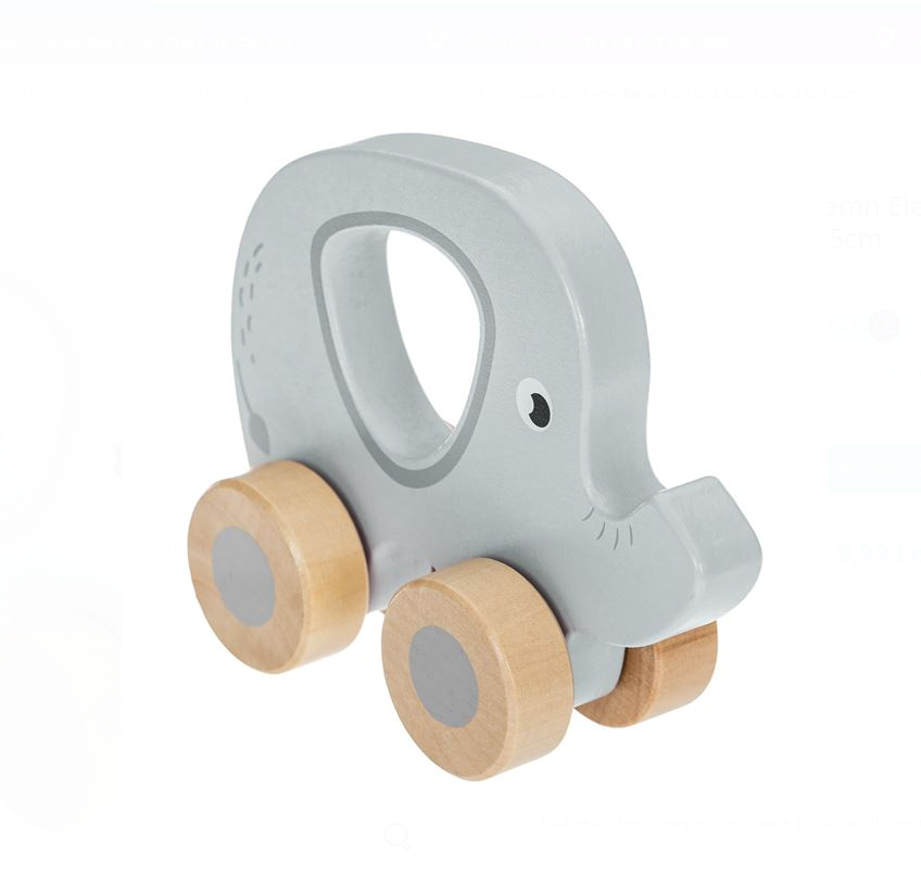 Elefant din lemn, albastru, cu 4 Roti,10.5×12.8×4.5cm, 6 luni+