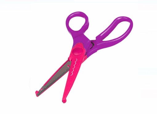 Aceasta foarfeca este excelenta pentru a fi folosita la scoala! Este confectionata din otel inoxidabil, cu varf rotund si protectie. Foarfece pentru tăierea hârtiei cu tăietură ondulată.