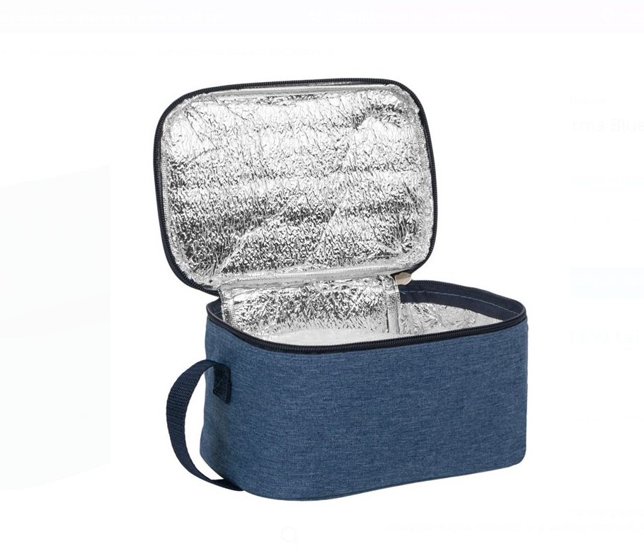 Geanta izoterma din material plastifiat la exterior pentru a o curata uşor şi rapid, in interior are captuşeala ce ajuta alimentele sa işi pastreze temperatura lor. Cu maner şi fermoar.