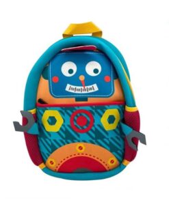 Este format din 1 compartiment. Are un imprimeu cu un robot dragalas, iar in lateral are doua buzunare cu plasa special pentru sticla de apa a celor mici.