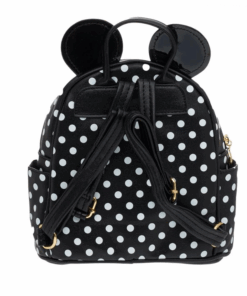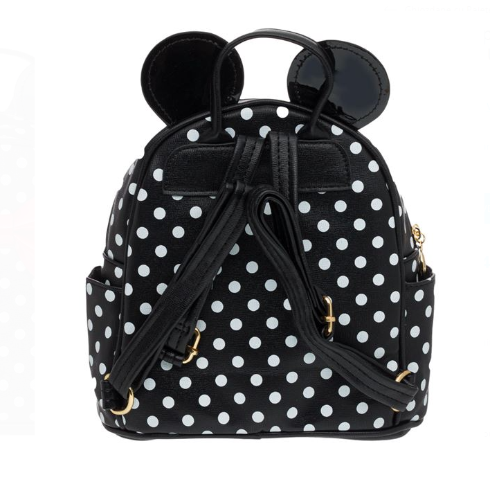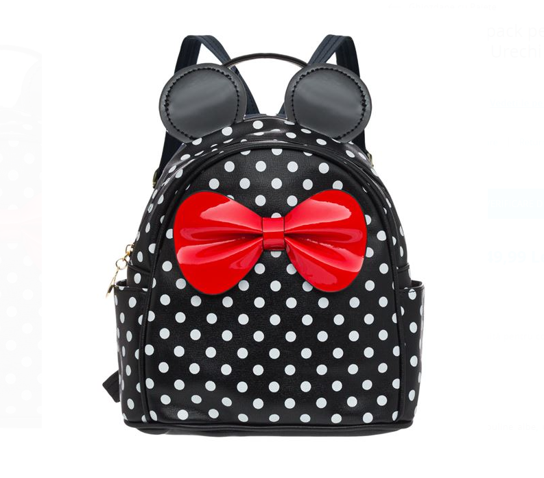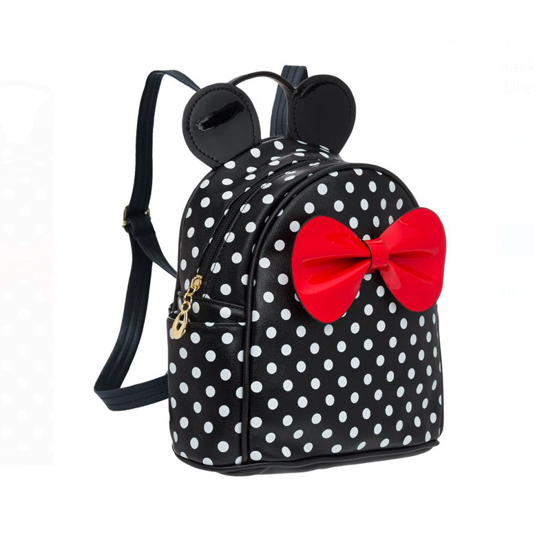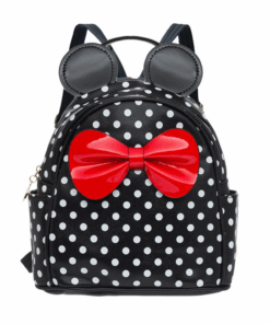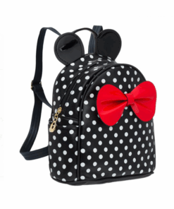 Ghiozdan fetita – geanta de scoala.Rucsac backpack pentru fete, negru cu buline albe, urechi si funda rosie lucioasa, fermoar metalic, maner si curele reglabile