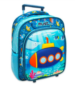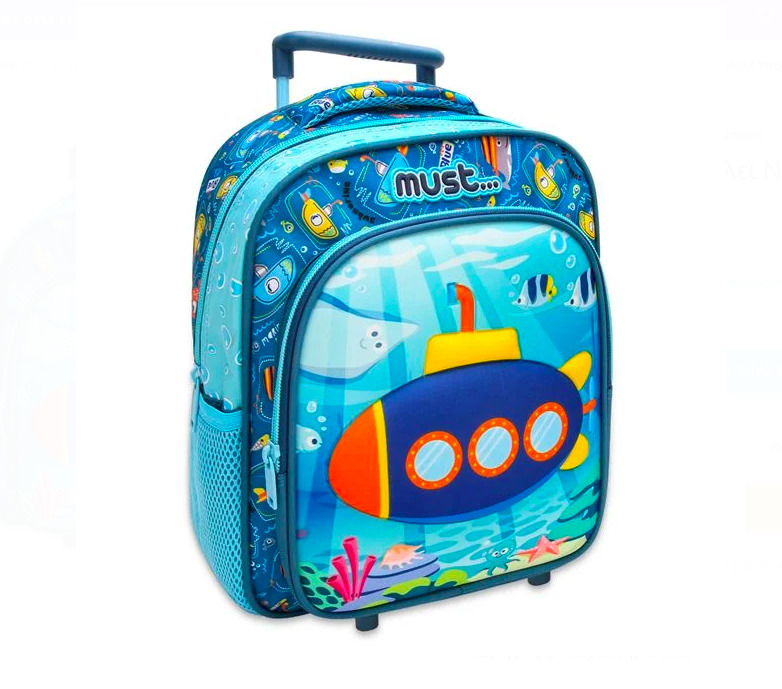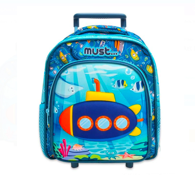 Ghiozdanelul este prevazut cu plasa laterala pentru o ventilatie sporita si are un design atractiv pentru baietei. Are culori atractive si un imprimeu cu un submarin micut. Are fermoare rezistente și curele reglabile.