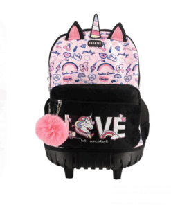 Ghiozdan scolar fete cu 2 compartimente, tip troller – Unicorn, Fanatee