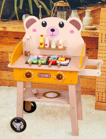 - Explorare și Joc de Rol: Copiii pot „găti” pe grătar diverse alimente, de la fripturi la legume, îmbunătățindu-și astfel abilitățile motorii și coordonarea mână-ochi.