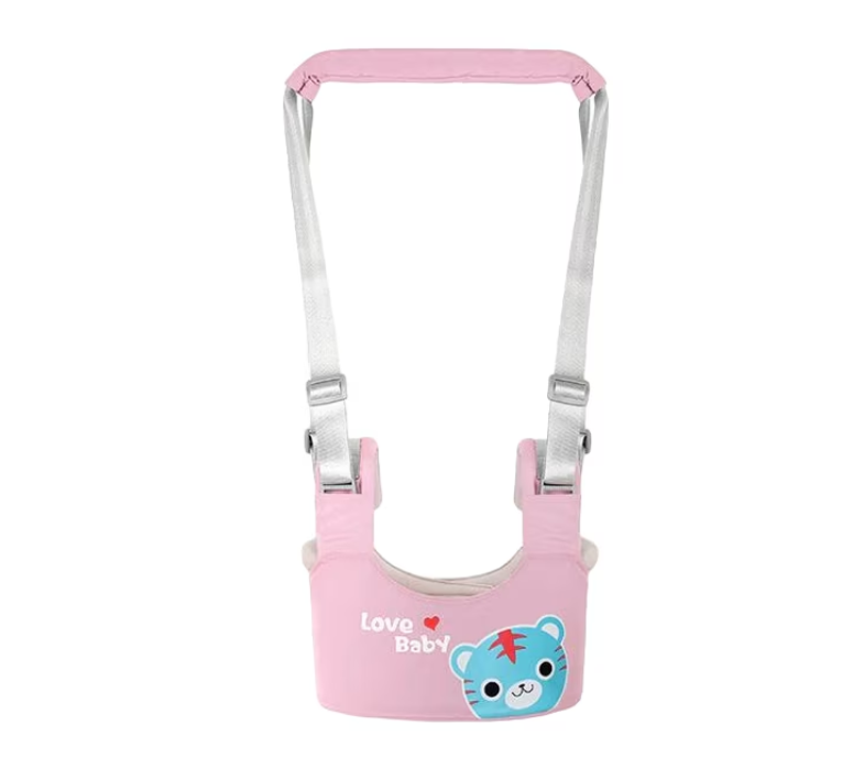 - Design atractiv: Disponibil într-o culoare roz plăcută, hamul are un design adorabil cu un ursuleț albastru și inscripția „Love Baby”, fiind atât funcțional, cât și estetic.