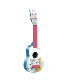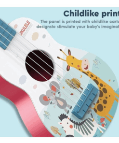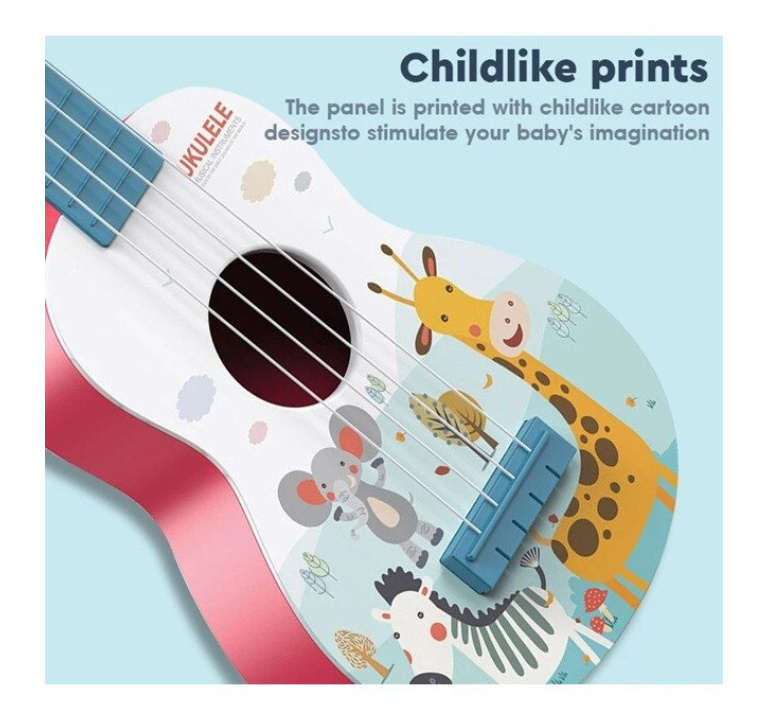 Cu un design atractiv, decorată cu ilustrații vesele cu animale, chitara este ideală pentru a stimula creativitatea și imaginația copiilor, ajutându-i să își dezvolte auzul muzical și coordonarea mână–ochi.