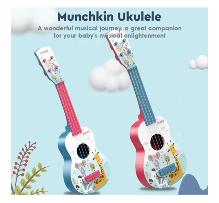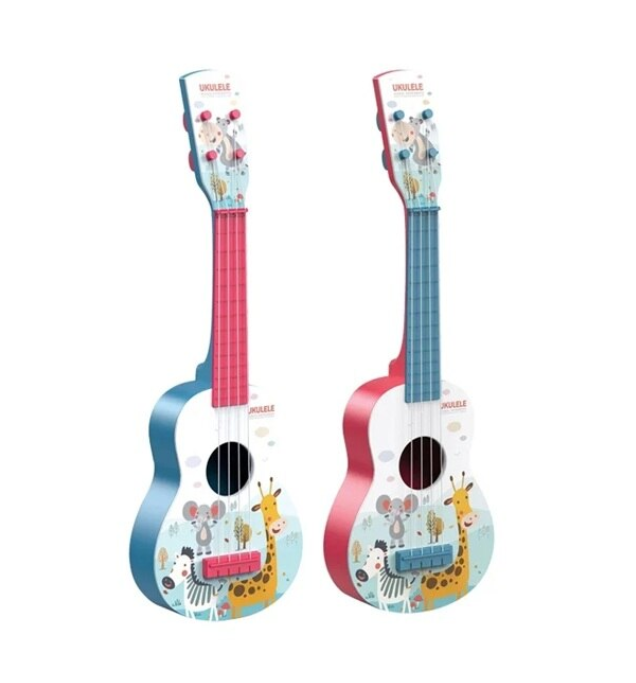 Descoperă plăcerea muzicii cu chitara tip ukulele pentru copii, de 55 cm, un instrument muzical educativ și distractiv, conceput special pentru micii pasionați de sunete și ritm.
