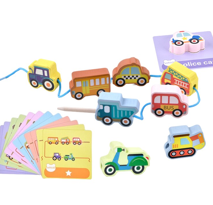 - Șnuruire: Copiii pot folosi șnururile pentru a șnura piesele mijloacelor de transport în ordine, învățând să își îmbunătățească dexteritatea și coordonarea. Aceasta este o activitate excelentă pentru dezvoltarea motricității fine și a coordonării mâini-ochi.