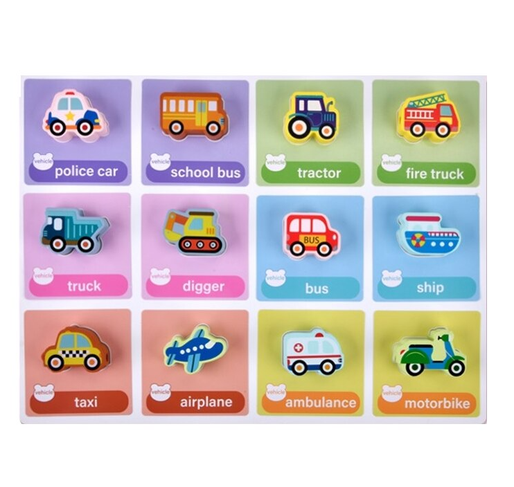 - Logică și memorie: Cu ajutorul cardurilor incluse, copiii trebuie să potrivească ordinea mijloacelor de transport pe șnur în funcție de ilustrațiile de pe carduri. Această activitate dezvoltă capacitatea de rezolvare a problemelor, gândirea logică și memoria.