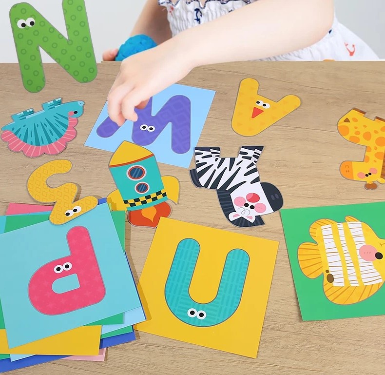 Asociază litera cu imaginea corespunzătoare (ex: „Z” cu zebră, „F” cu pește).