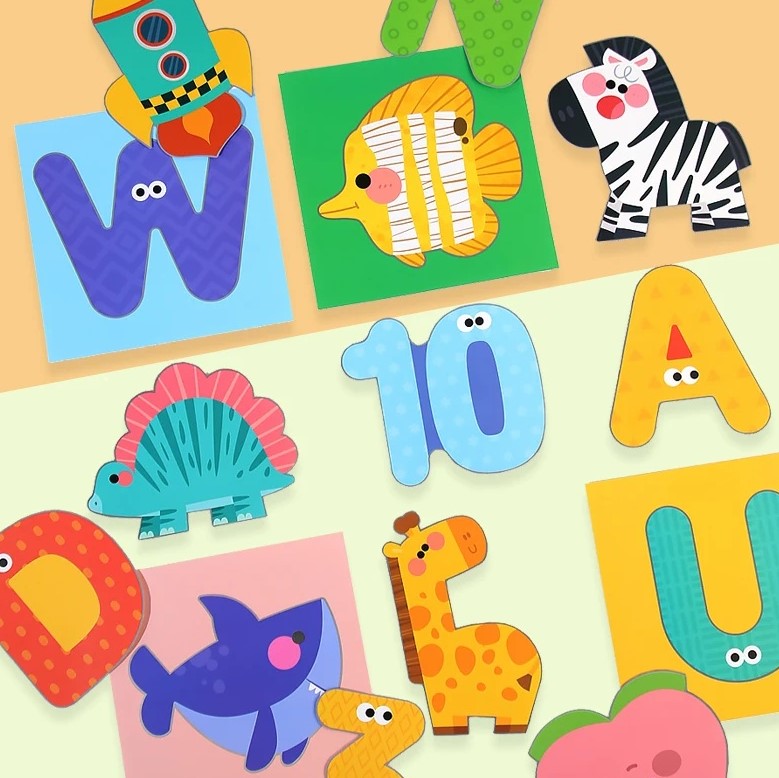 Puzzle incastru - Alfabet si asociere, in limba engleza