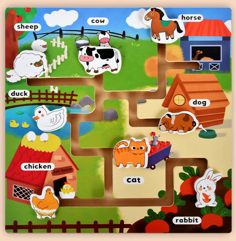 Jocul pune accentul pe dezvoltarea dexteritatii si motricitatii mainilor prin asocierile si prinderile pe care cei mici trebuie sa le faca. Prichindeii pot repeta si animalele de la ferma prin intermediul acestei jucarii educative.