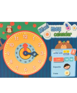 Jocul educativ „Ceas Calendar magnetic” este o jucărie interactivă în limba română, concepută pentru a-i ajuta pe cei mici să înțeleagă conceptele de timp, zilele săptămânii, lunile anului, anotimpurile și fenomenele meteo, într-un mod distractiv și educativ.