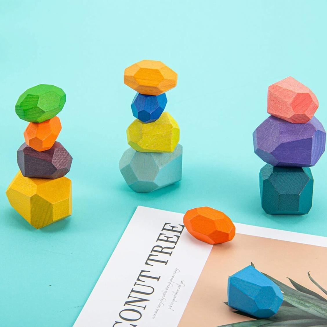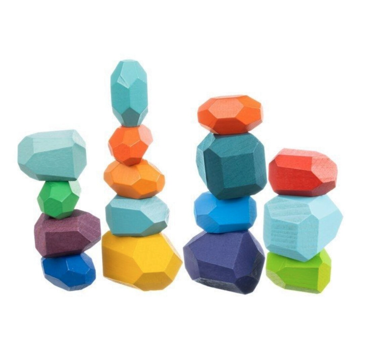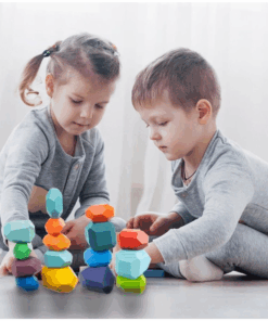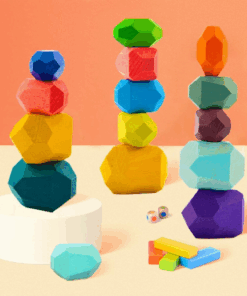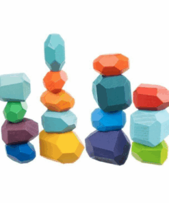 Setul educativ de pietricele Montessori format din 16 piese de stivuit colorate din lemn il va ajuta pe cel mic sa isi dezvolte si imbunatateasca abilitatile motorii fine, sa inteleaga notiunea de echilibru, ii va imbunatati gandirea, atentia si imaginatia.