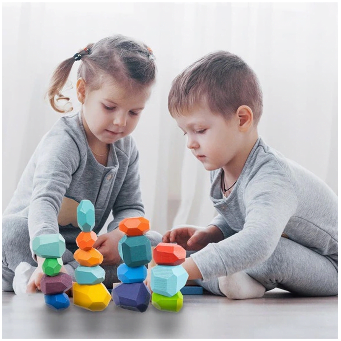 Principiul de joc este unul foarte simplu, distractiv si educativ, ce are la baza stivuirea pietricelelor din lemn, sub forma unor constructii in echilibru, astfel incat constructiile sa fie cat mai stabile.