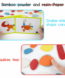 Acest joc creativ Montessori este un material educațional conceput pentru a stimula coordonarea motorie fină, gândirea logică și abilitățile de echilibru prin explorarea tactilă și vizuală a formelor și culorilor. Setul conține pietricele din material eco-friendly, vopsite în culori vibrante, cartonașe cu modele și un set de pensule și vopsele, oferind o experiență de învățare practică și multisenzorială.