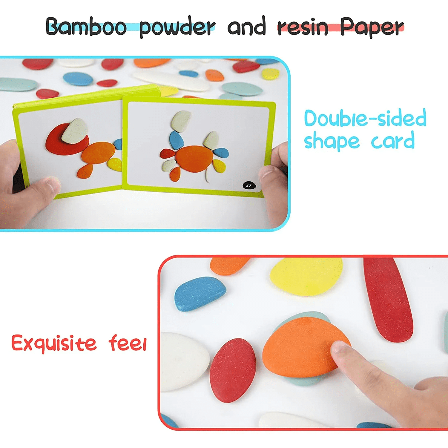 Joc creativ Montessori, Puzzle cu pietricele colorate si joc echilibru, 3 ani