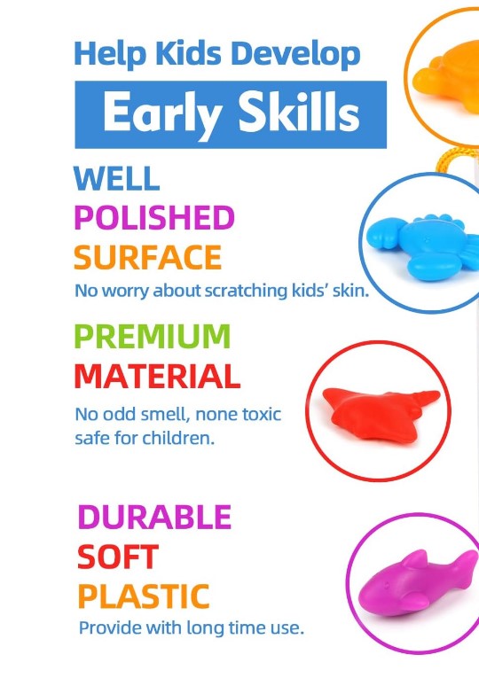 Acest joc educativ de tip Montessori îi ajută pe cei mici să descopere lumea fascinantă a animalelor marine, dezvoltând în același timp abilități esențiale precum sortarea, recunoașterea culorilor și coordonarea mână-ochi.
