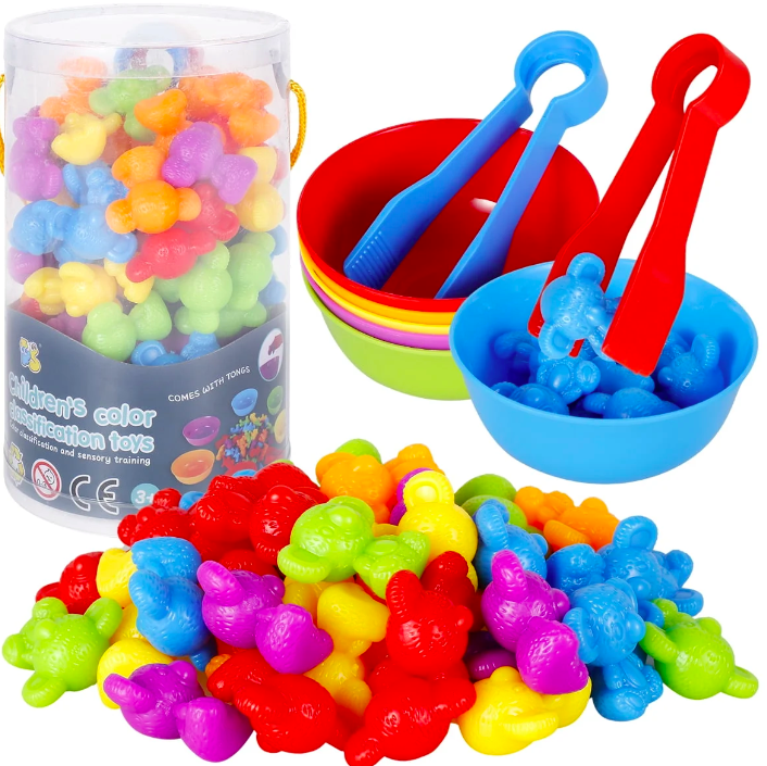 - Metode de utilizare variate: Folosește cleștii pentru a prinde și sorta ursuleții în boluri, stimulând abilitățile motorii fine și răbdarea copilului.