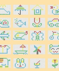 Jocul creativ Mozaic Pixel Magnetic este realizat dintr-o planșetă cu suprafață magnetică și 50 de butoni colorați.
