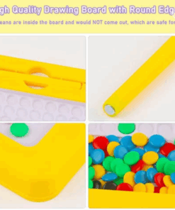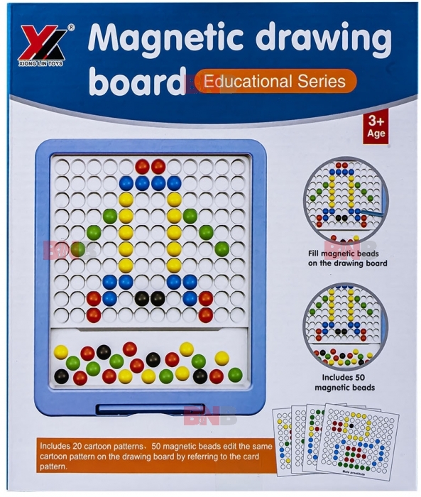 Conține: 1 tablă magnetică, 50 butoni colorați în 5 culori