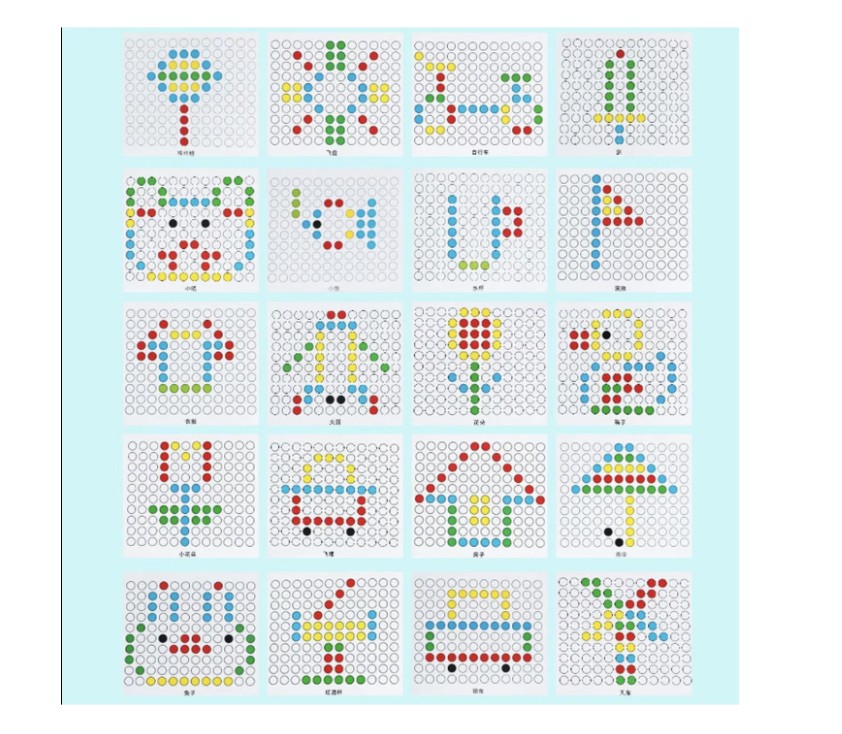 Dezvoltă gândirea logică și abilitățile de planificare, copilul trebuind să plaseze butonii conform unui șablon sau propriei idei.