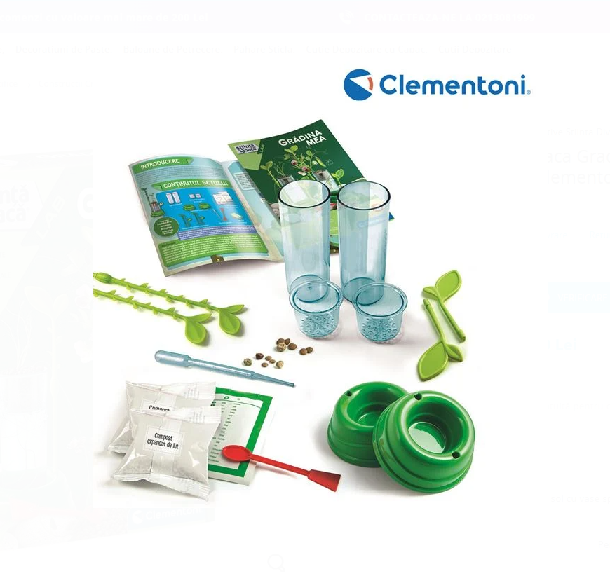 Setul conține vase transparente și accesorii special concepute pentru a sprijini creșterea plantelor, oferind o experiență educativă unică și interactivă. Prin experimentele realizate, copiii își vor dezvolta curiozitatea științifică, răbdarea și spiritul de observație, în timp ce învață despre botanică și ecologie.