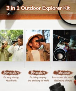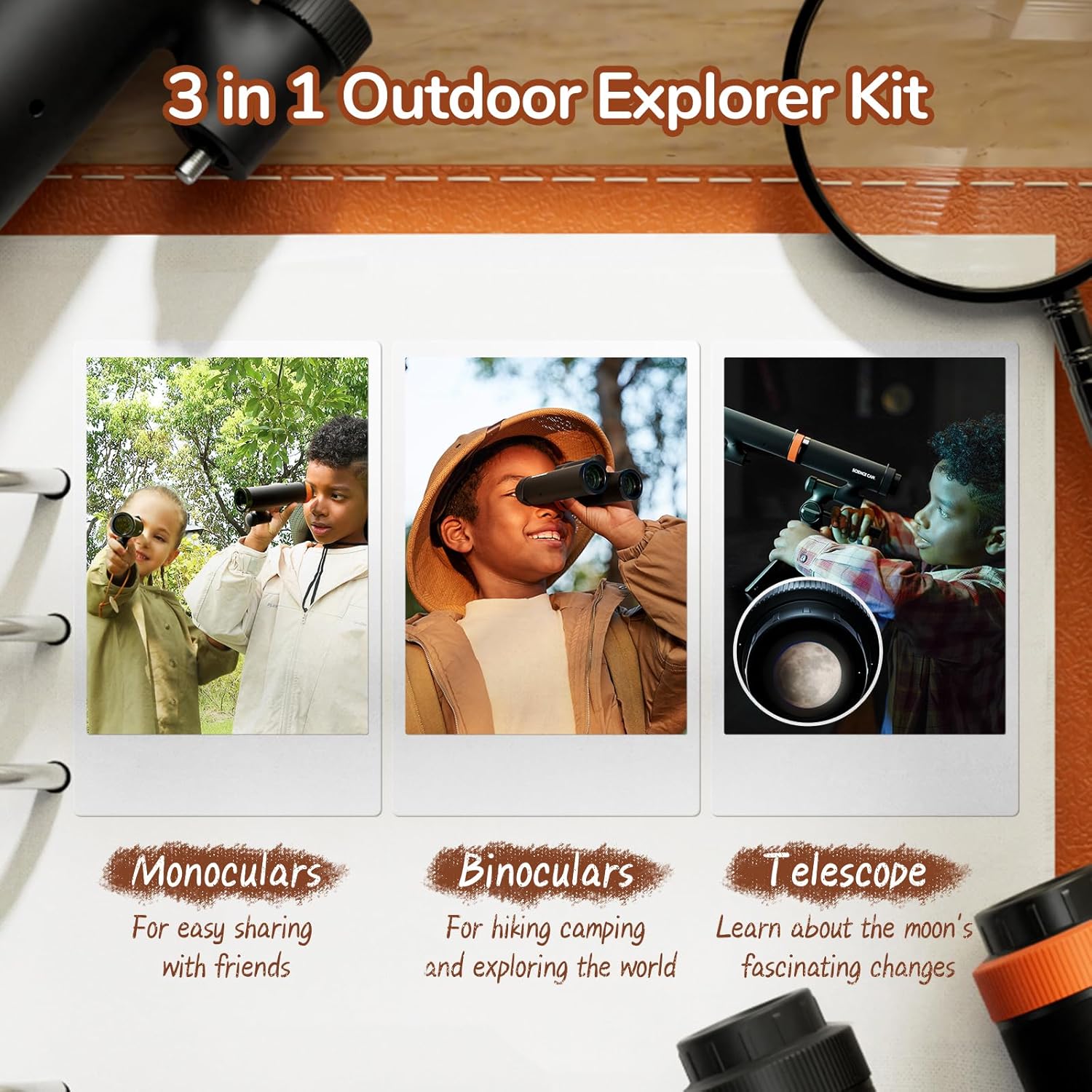 ✔ Binoclu / Monoclu – asigură o mărire de 4x, fiind ideal pentru plimbări în natură, observarea păsărilor sau a obiectelor aflate la distanță.