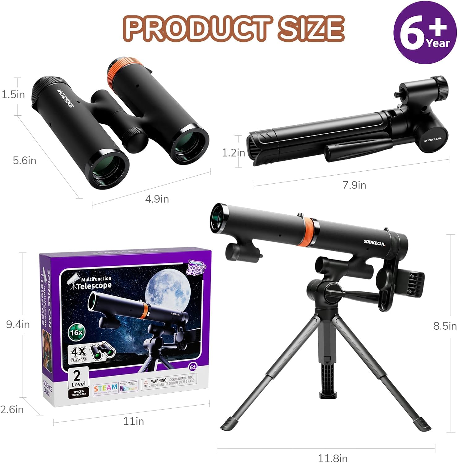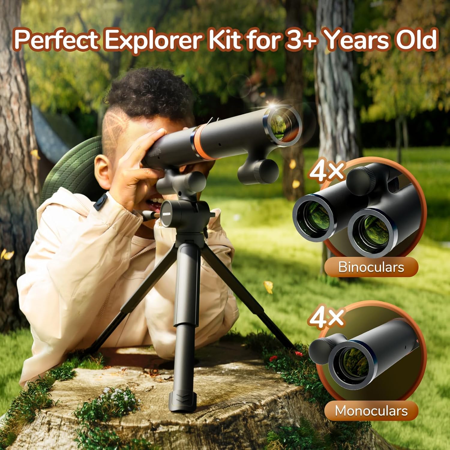Acest set educativ 2 în 1 este ideal pentru micii exploratori curioși să descopere tainele științei și ale naturii. Combinația dintre microscop și binoclu îi ajută pe copii să observe atât lumea microscopică, cât și peisajele îndepărtate, animalele sau cerul înstelat.