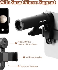 Poți atașa smartphone-ul în suport pentru a fotografia sau filma observațiile.