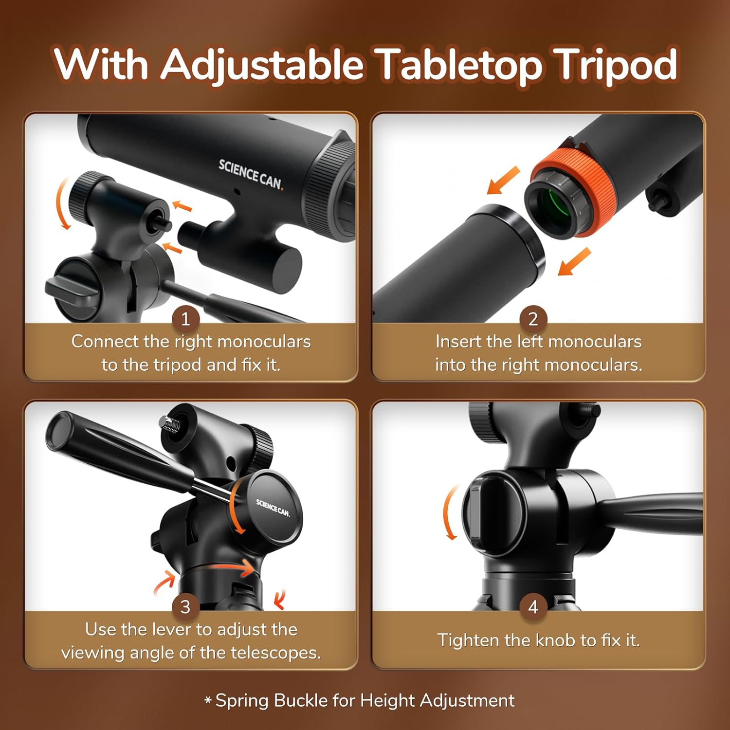✔ Trepied reglabil – permite o poziționare stabilă și confortabilă a telescopului.