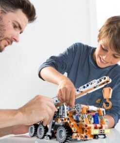 Descoperă lumea construcțiilor tehnice cu acest set de 272 piese tip LEGO, ideal pentru copiii pasionați de inginerie și mașini. Setul permite construirea unei mașini cu braț mecanic funcțional și include mecanisme interactive precum ridicarea și coborârea cârligului sau mișcarea brațului prin roți dințate.