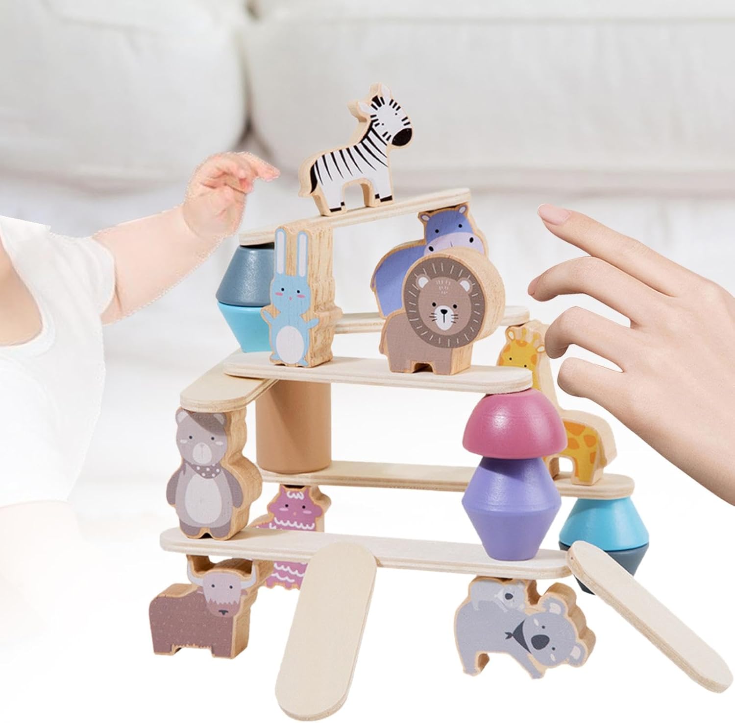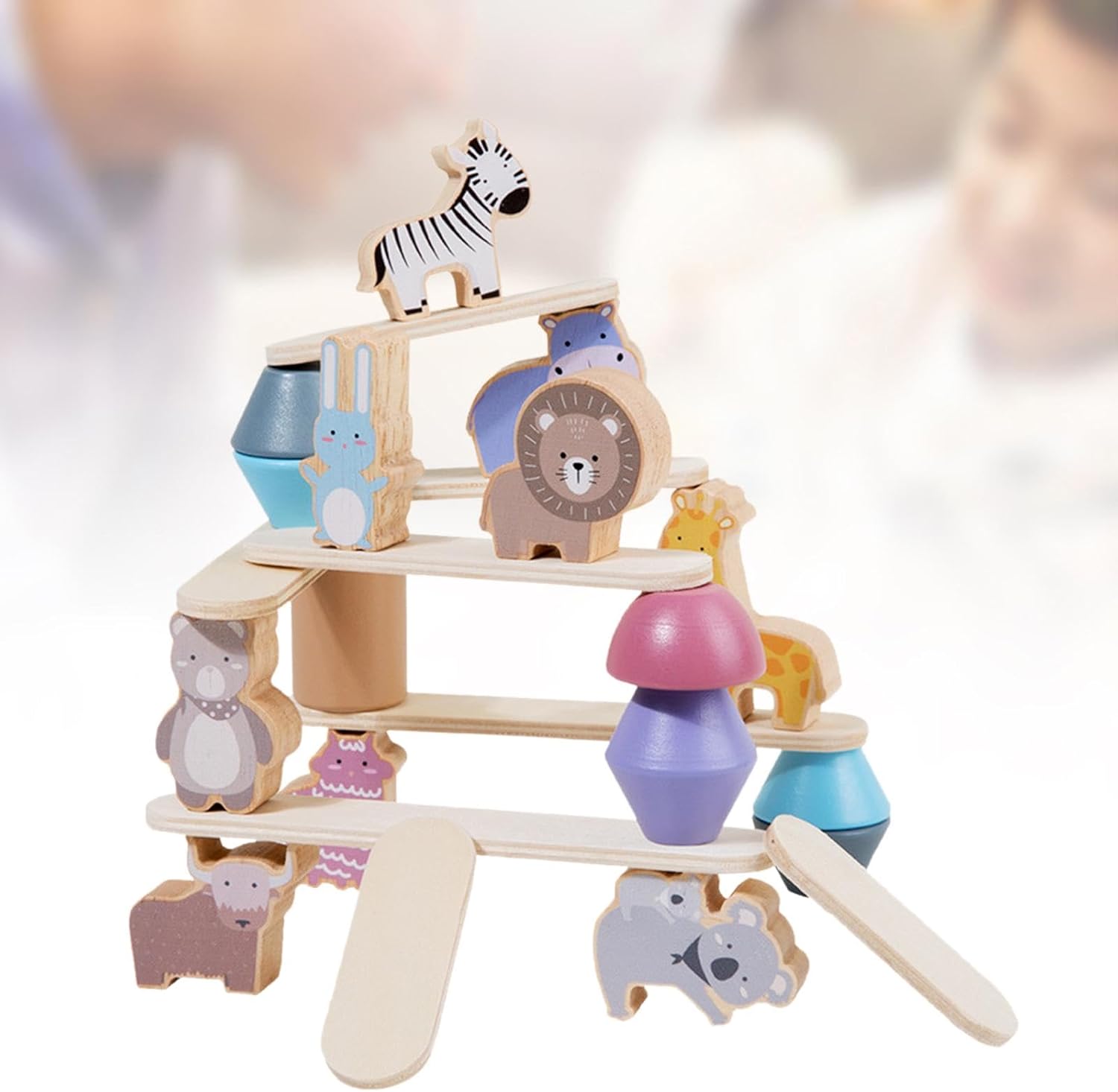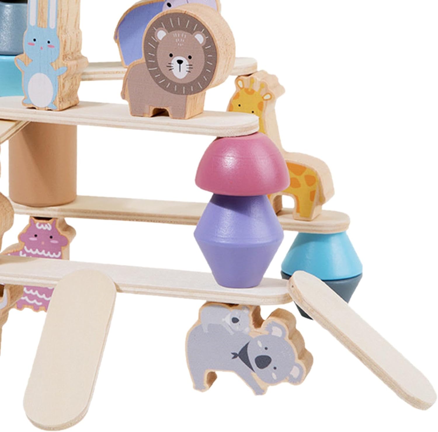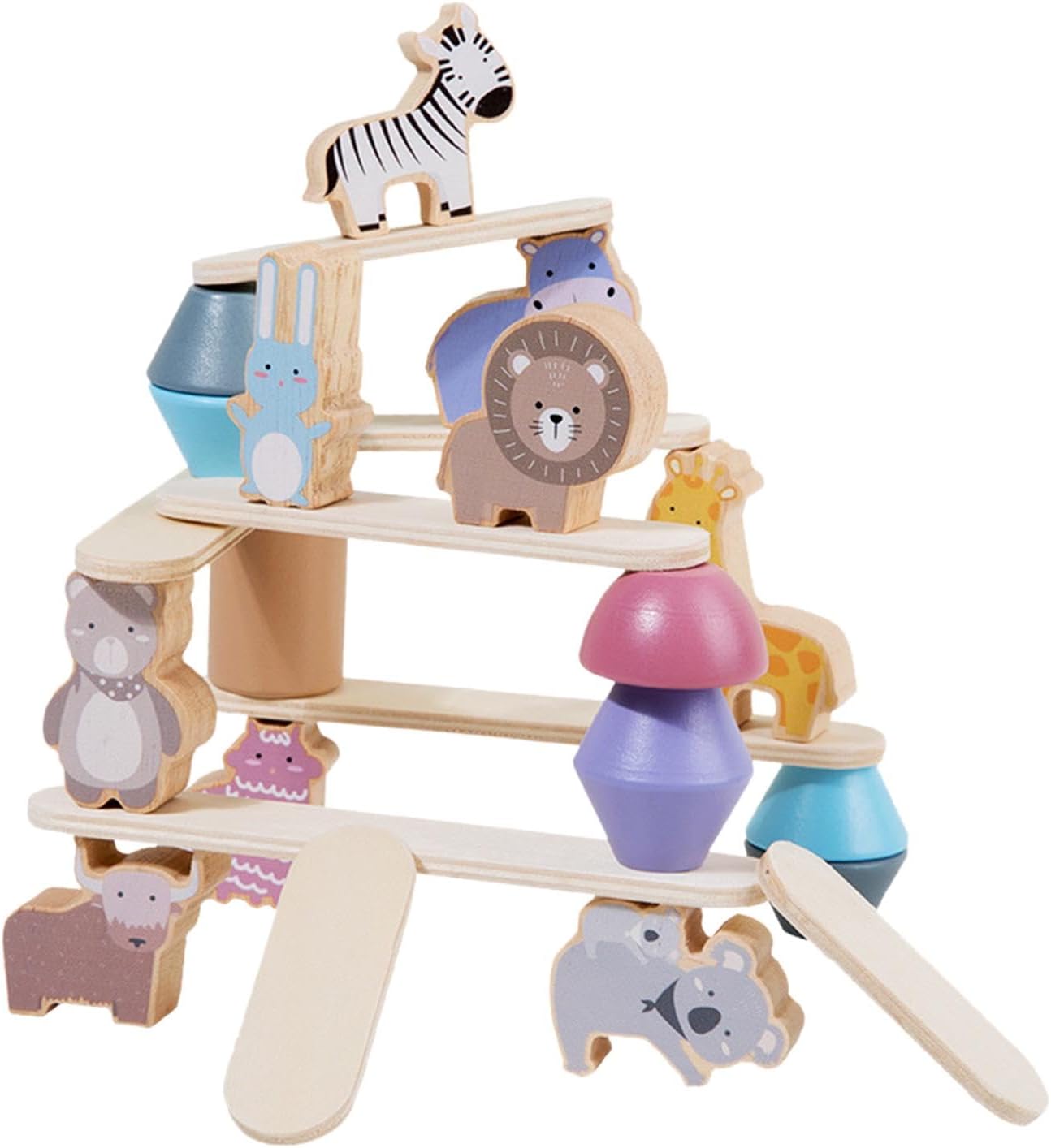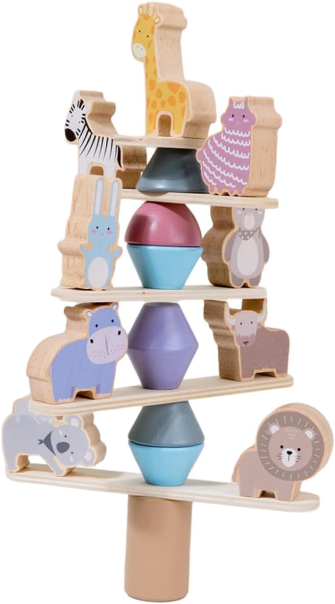 Acest joc de echilibru din lemn este perfect pentru dezvoltarea coordonării, răbdării și concentrării copiilor cu vârsta de 3 ani și peste. Setul conține figurine de animale adorabile și blocuri geometrice colorate, toate din lemn natural, ce pot fi folosite pentru a crea construcții înalte și echilibrate. Copiii vor învăța să manevreze cu grijă piesele pentru a construi structuri fără a le dărâma.