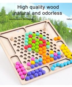 Material: lemn natural și bile colorate din plastic rezistent, non-toxic.