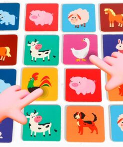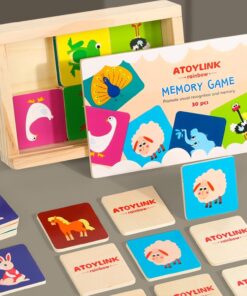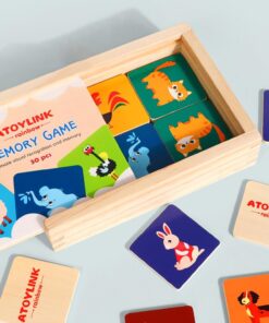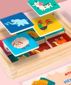 Jocul de memorie din lemn cu animale este o jucărie educativă menită să îmbunătățească concentrarea, recunoașterea vizuală și memoria celor mici. Setul conține 30 de piese ilustrate cu animale viu colorate, fiecare având un corespondent pereche. Aceste piese sunt realizate din lemn de calitate superioară, cu margini netede și rotunjite pentru siguranța copiilor.