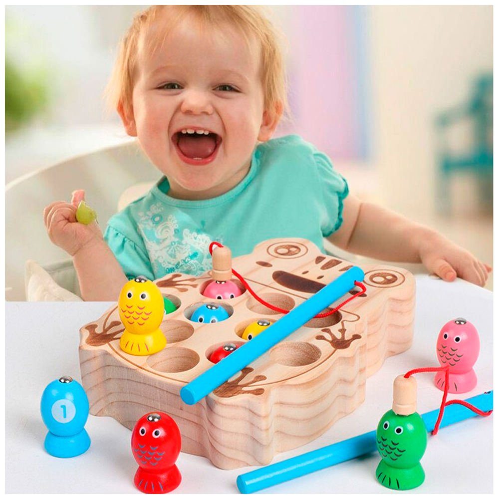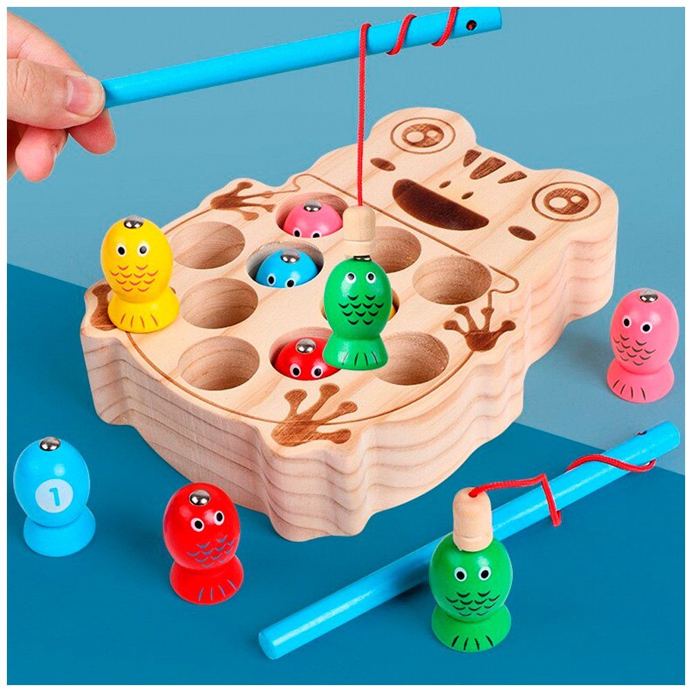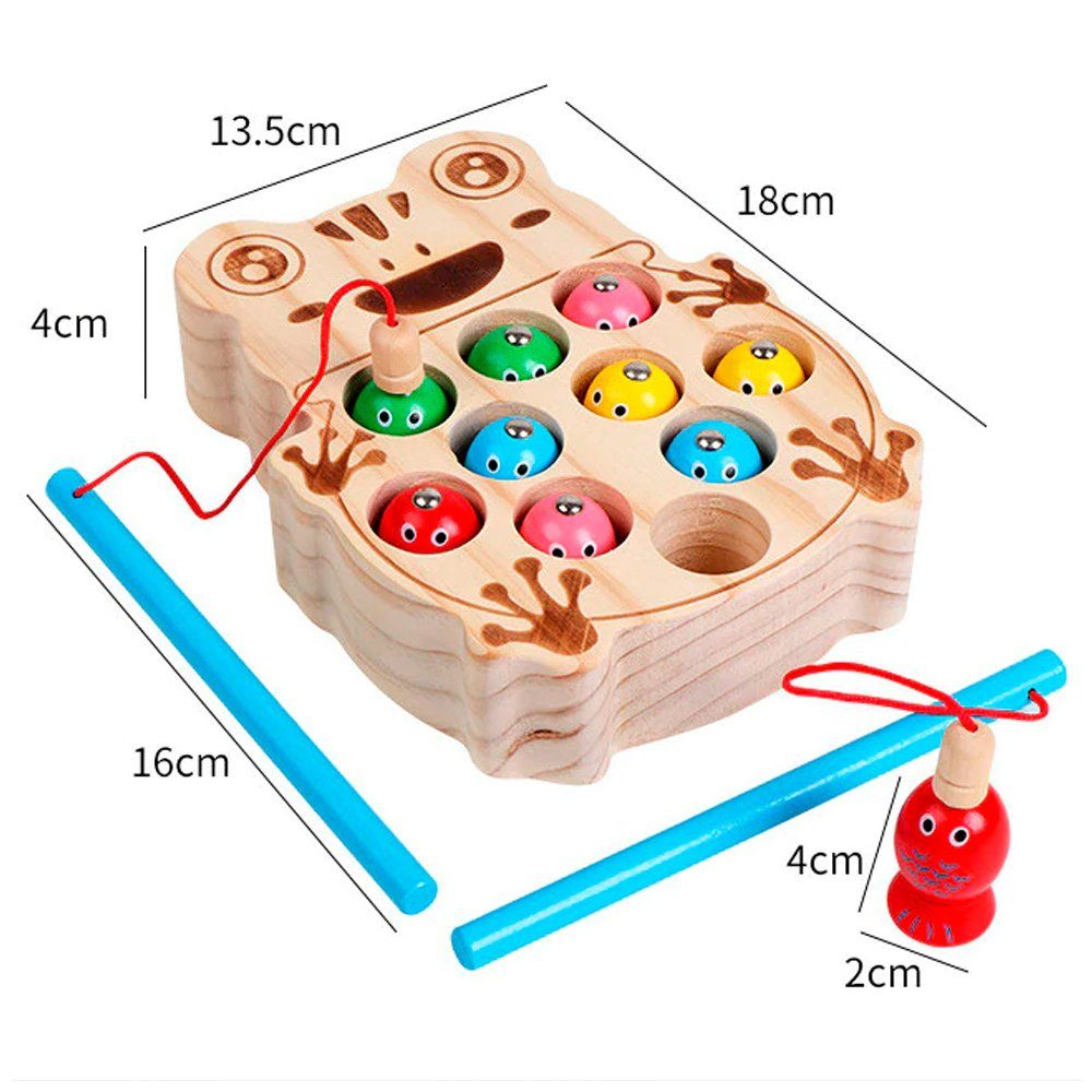 Joc magnetic de pescuit, din lemn, Broscuta, 3 ani
