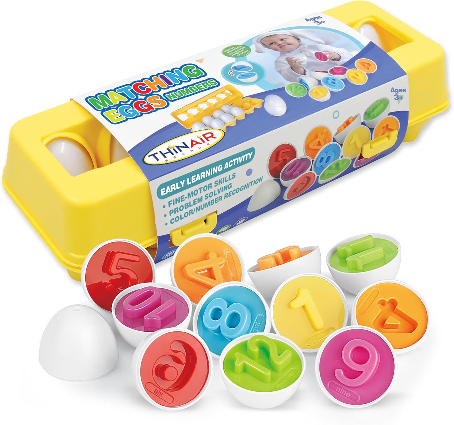 - Design interactiv: Setul include 12 ouă, fiecare cu jumătăți detașabile care se potrivesc în funcție de culoare, formă sau număr, încurajând micuții să învețe prin joacă.