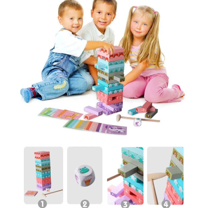 - Stimularea gândirii strategice: Micii jucători trebuie să planifice și să extragă piesele fără să dărâme turnul.