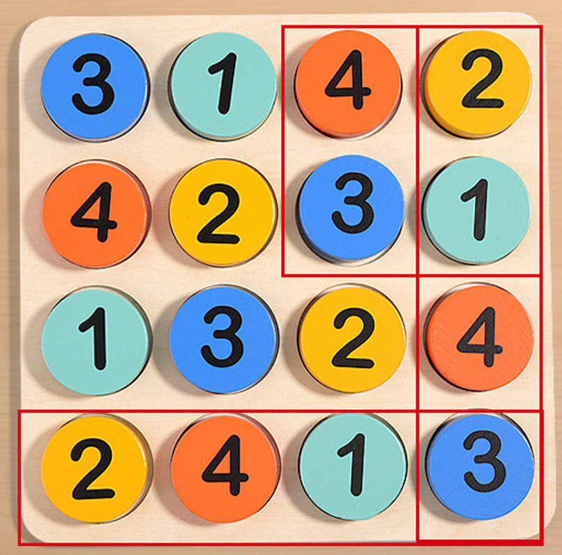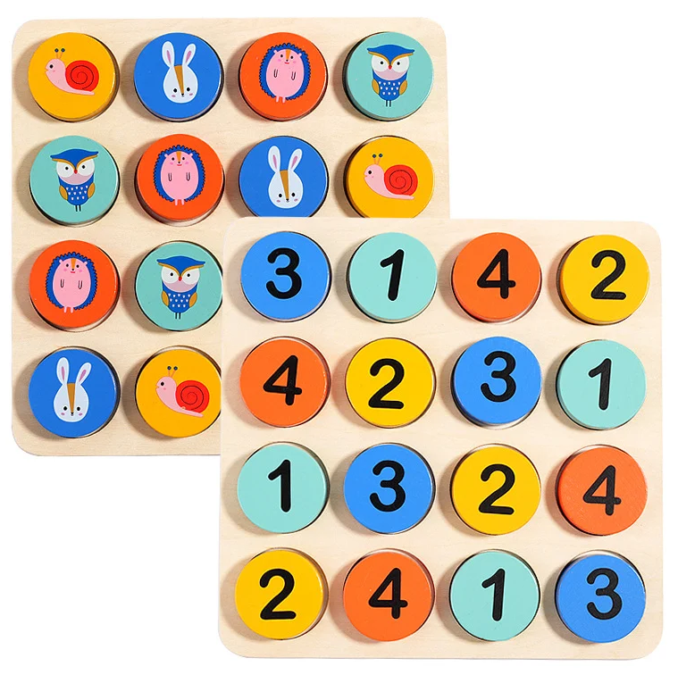 Acest joc de tip Sudoku este ideal pentru dezvoltarea abilităților cognitive și motorii ale copiilor, conform principiilor Montessori.