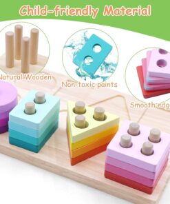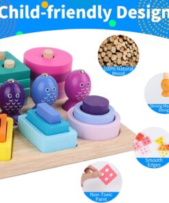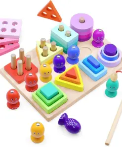 Jocul de sortare 3 în 1 este un set educativ multifuncțional care ajută copiii să învețe formele, culorile și principiile de bază ale organizării prin joc. Acesta este realizat din lemn natural și vopseluri non-toxice, având colțuri rotunjite pentru siguranța celor mici.