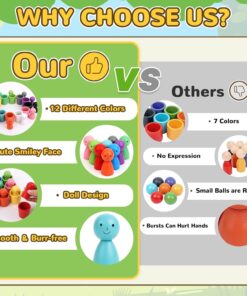 Acest joc educativ Montessori de sortare și asociere pe culori este conceput pentru a sprijini dezvoltarea cognitivă și emoțională a copiilor începând cu vârsta de 3 ani. Setul include 12 cupe din lemn și 12 figurine asociate, fiecare colorată distinct, pentru a stimula recunoașterea culorilor și coordonarea ochi-mână.