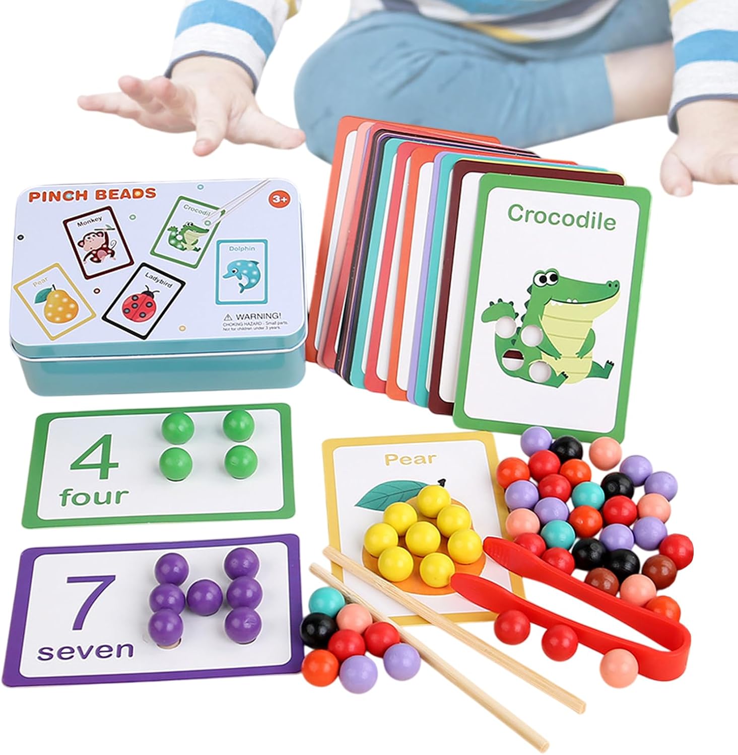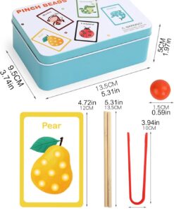 Penseta și bețișoarele ajută la exersarea prinderii și a motricității fine, stimulând răbdarea și concentrarea.